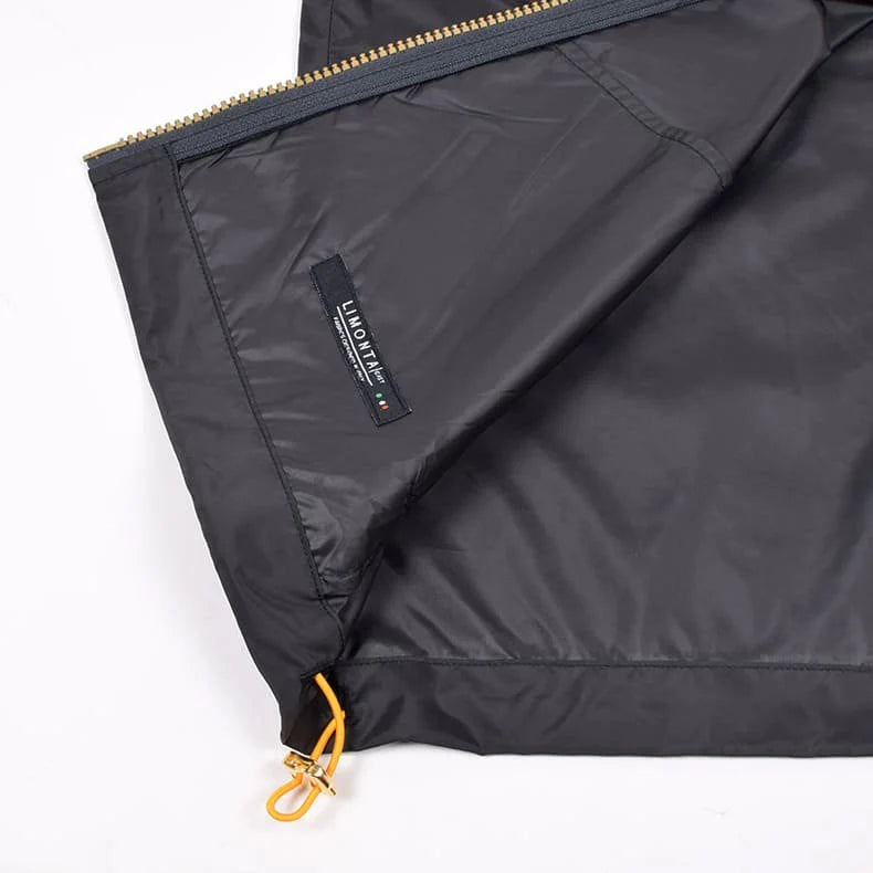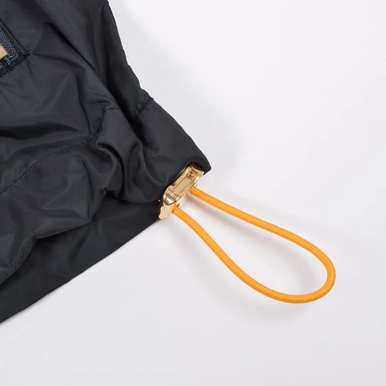高級感のあるYKK製のZIPファスナー。裾にはブランドカラーのイエローが映えるドローコードを配置。冷たい風の侵入を防ぎたいときは、ドローコードをキュっと絞ってシルエットの変化も楽しめます。