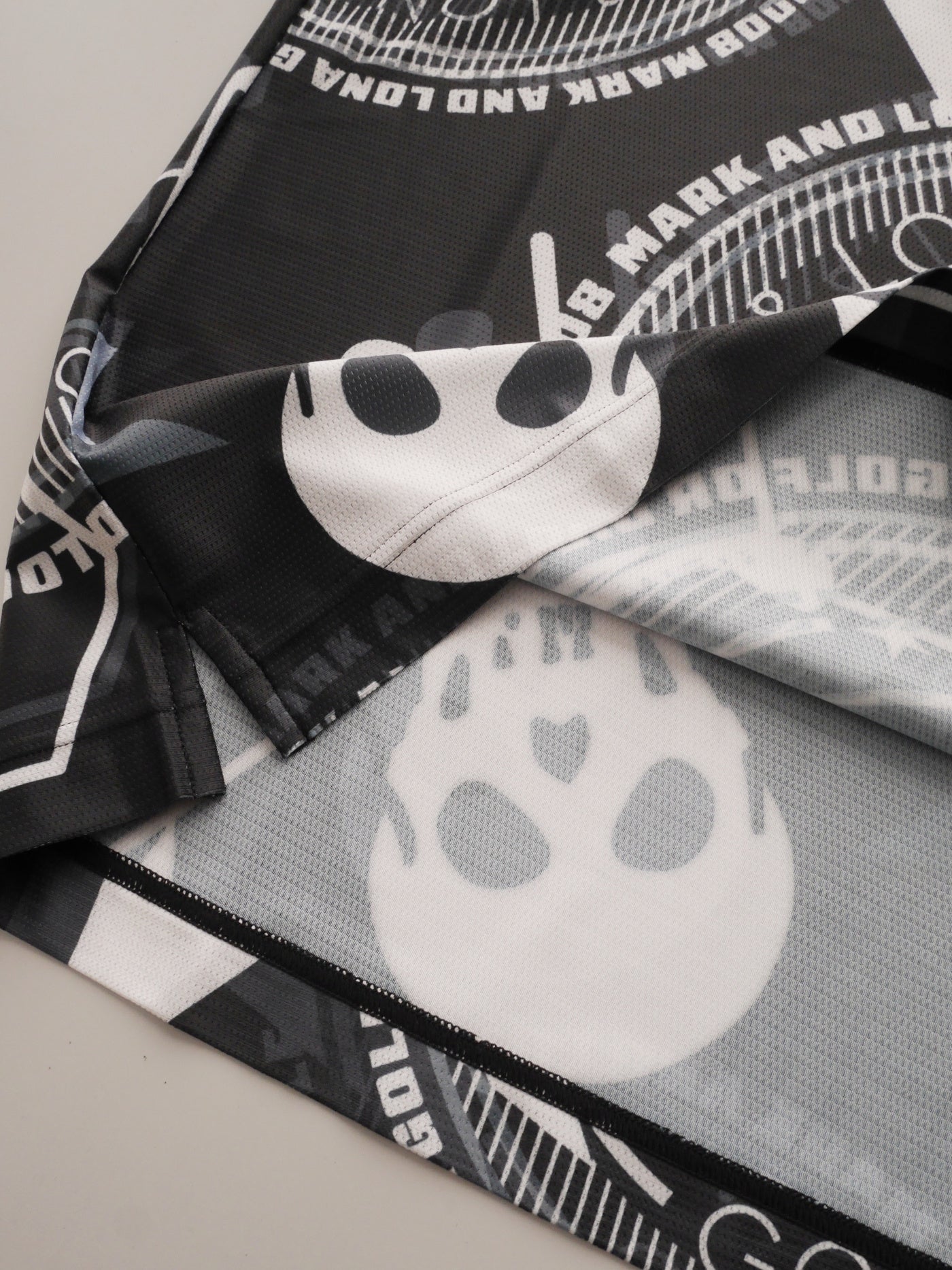 ・ブランドシグネチャーであるアイアンスカルとスターをミックスしたインパクトのある総柄プリント