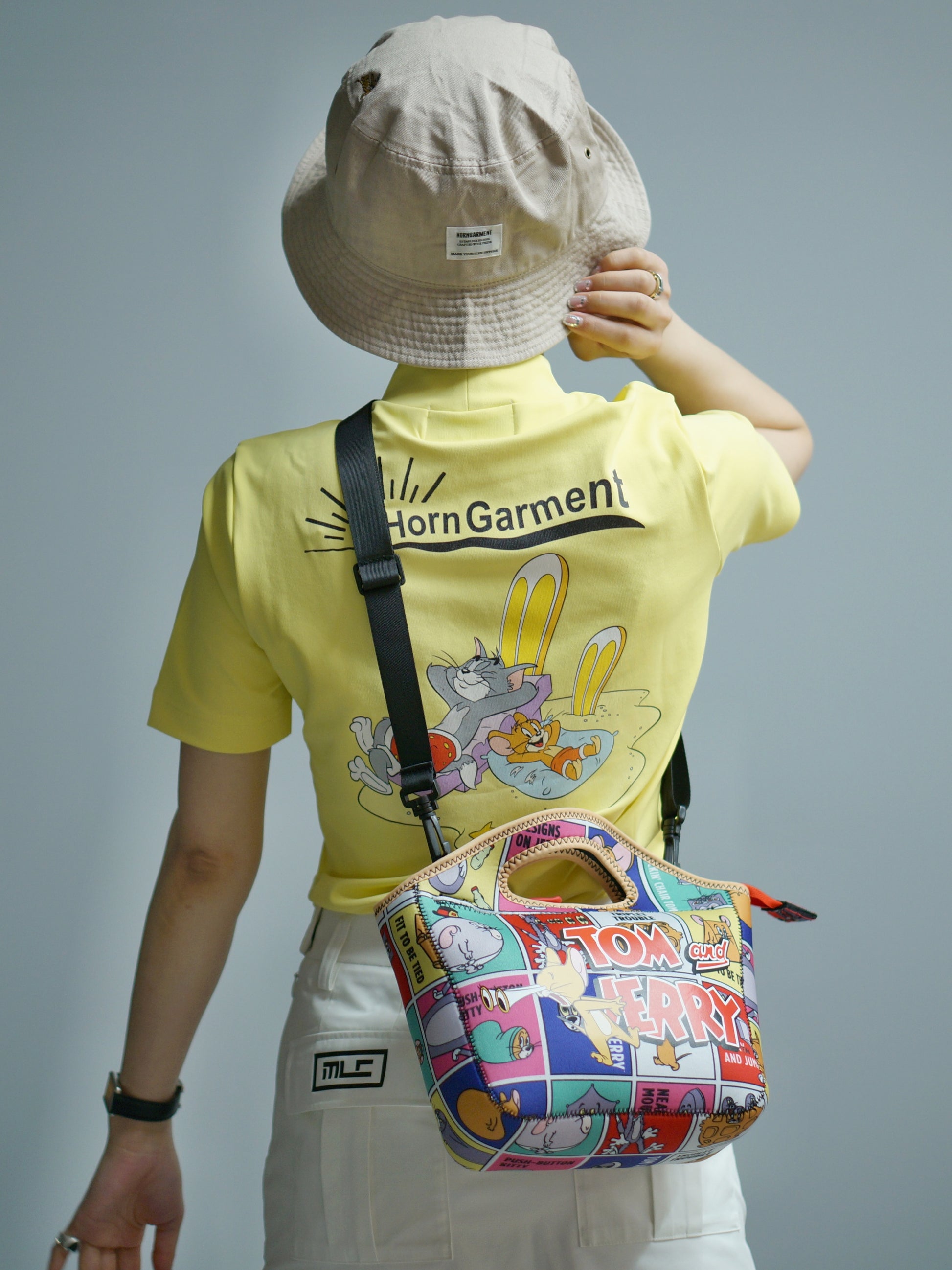 人気アニメ「トムとジェリー」とのコラボによるネオプレーン素材のポーチ。