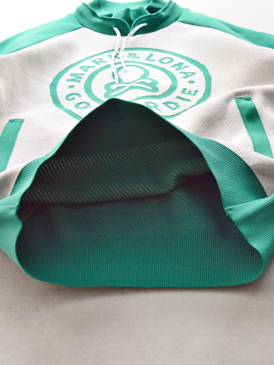 軽量でハイストレッチなポリエステル素材を使用した変形モックニットプルオーバー。