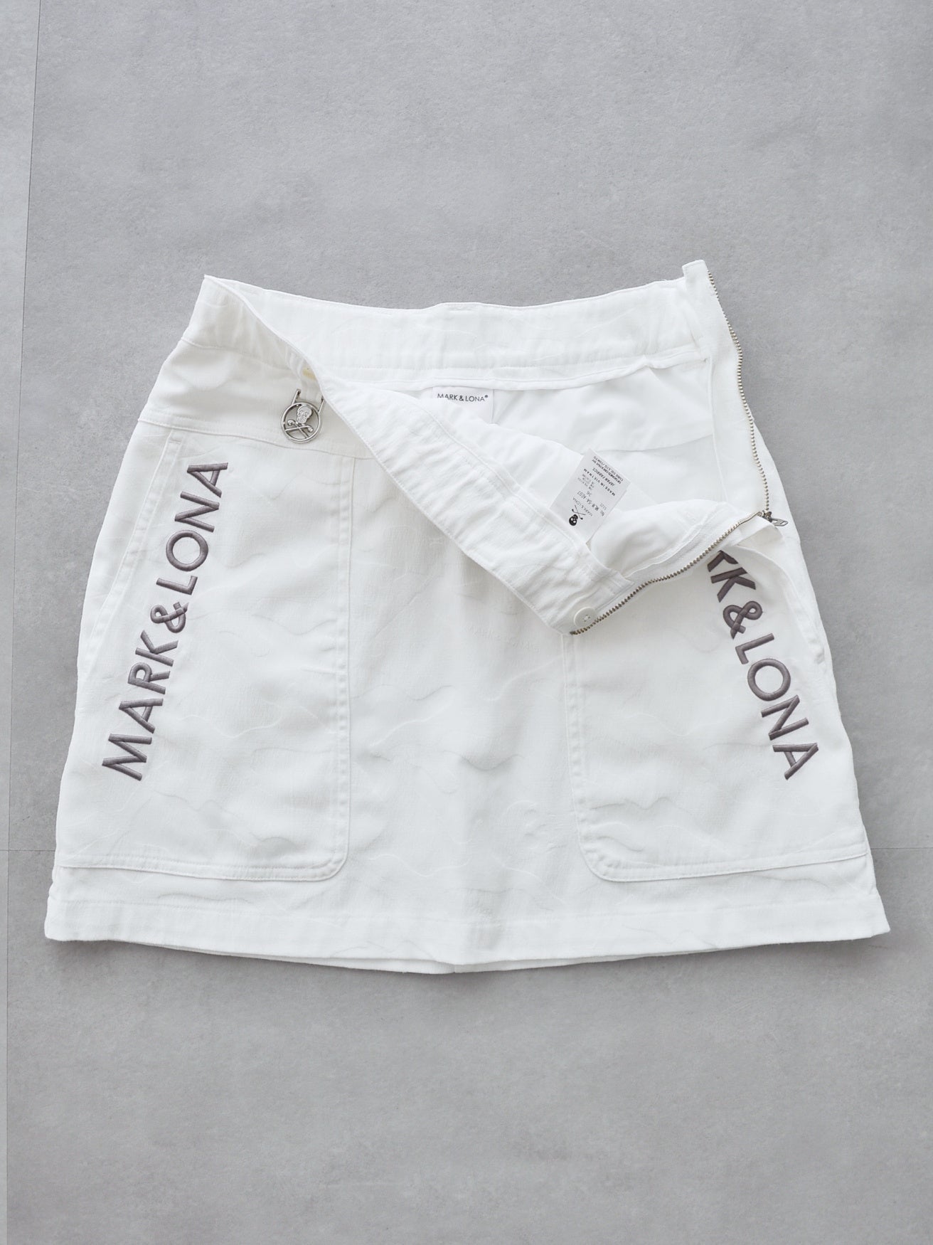 オリジナルカモフラージュパターンのトラペーズラインミニスカート。