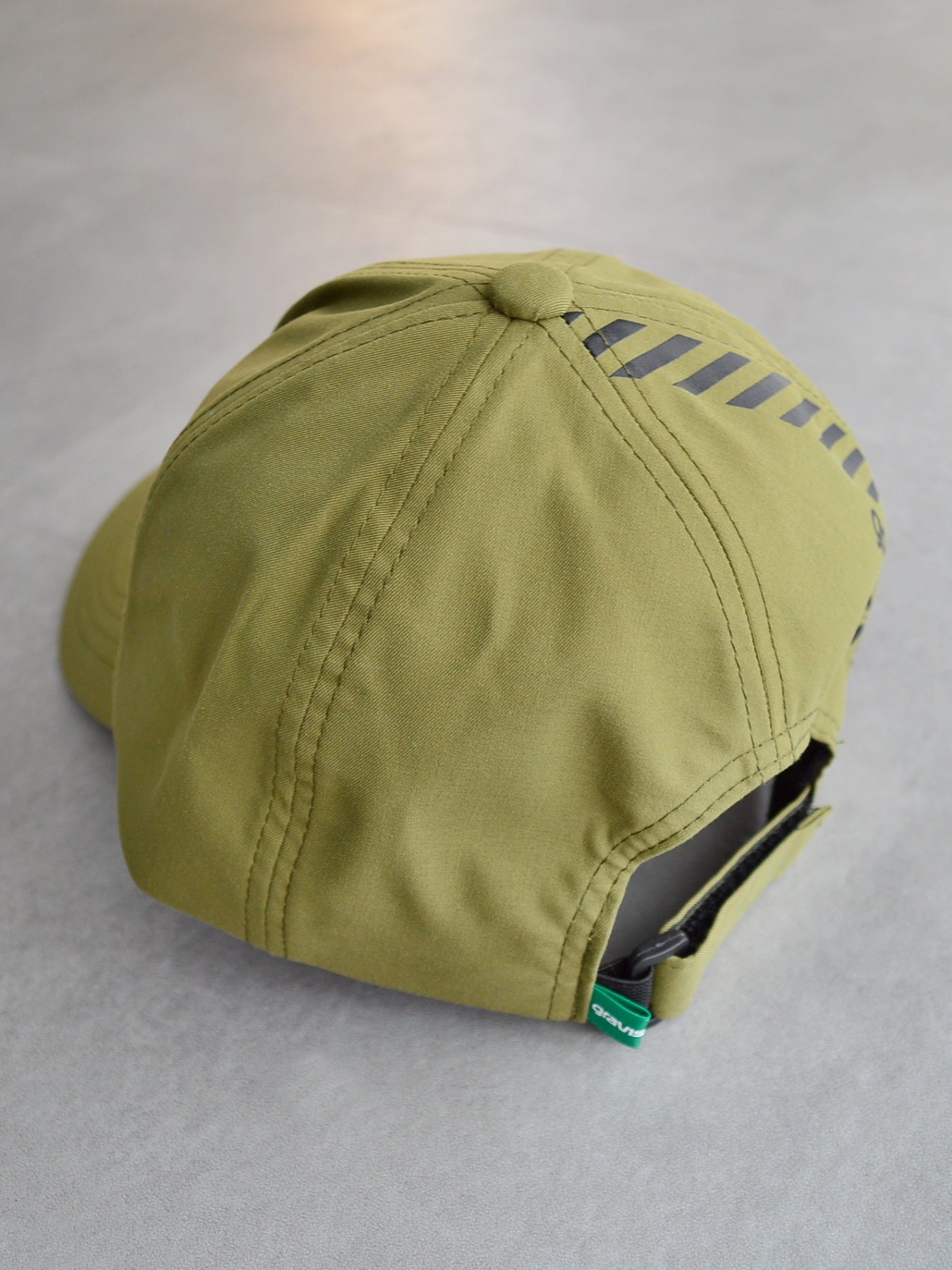 ブランドロゴをフロントにあしらった6パネルキャップ。吸湿速乾、UVカット、ストレッチ性の機能性に優れたリサイクルポリエステル素材を使用。全体に丸みをおび、シャープな印象のアメリカンタイプシルエット。シンプルな配色で汎用性の高いキャップです。
