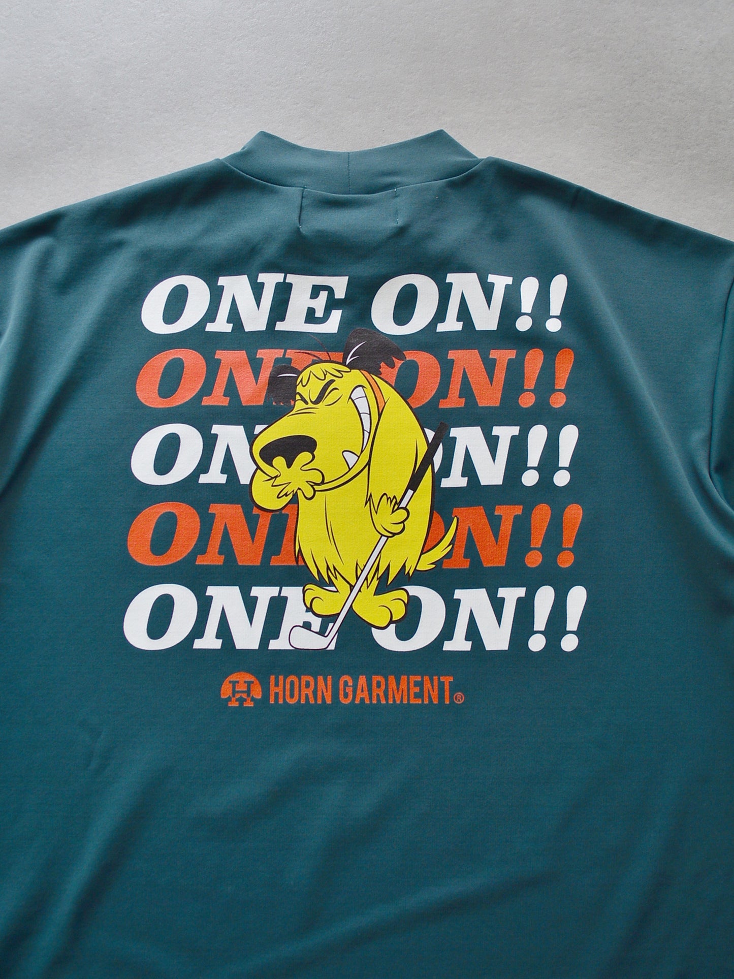 バックにゴルフクラブを持ったケンケンと『ONE ON!!』のレタードロゴをデザイン。
