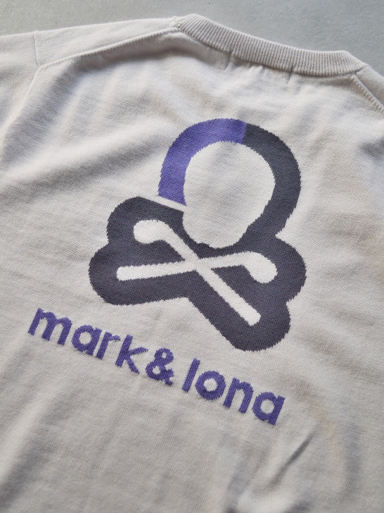 ・背面にブランクスカルとロゴをインターシャ編みで表現