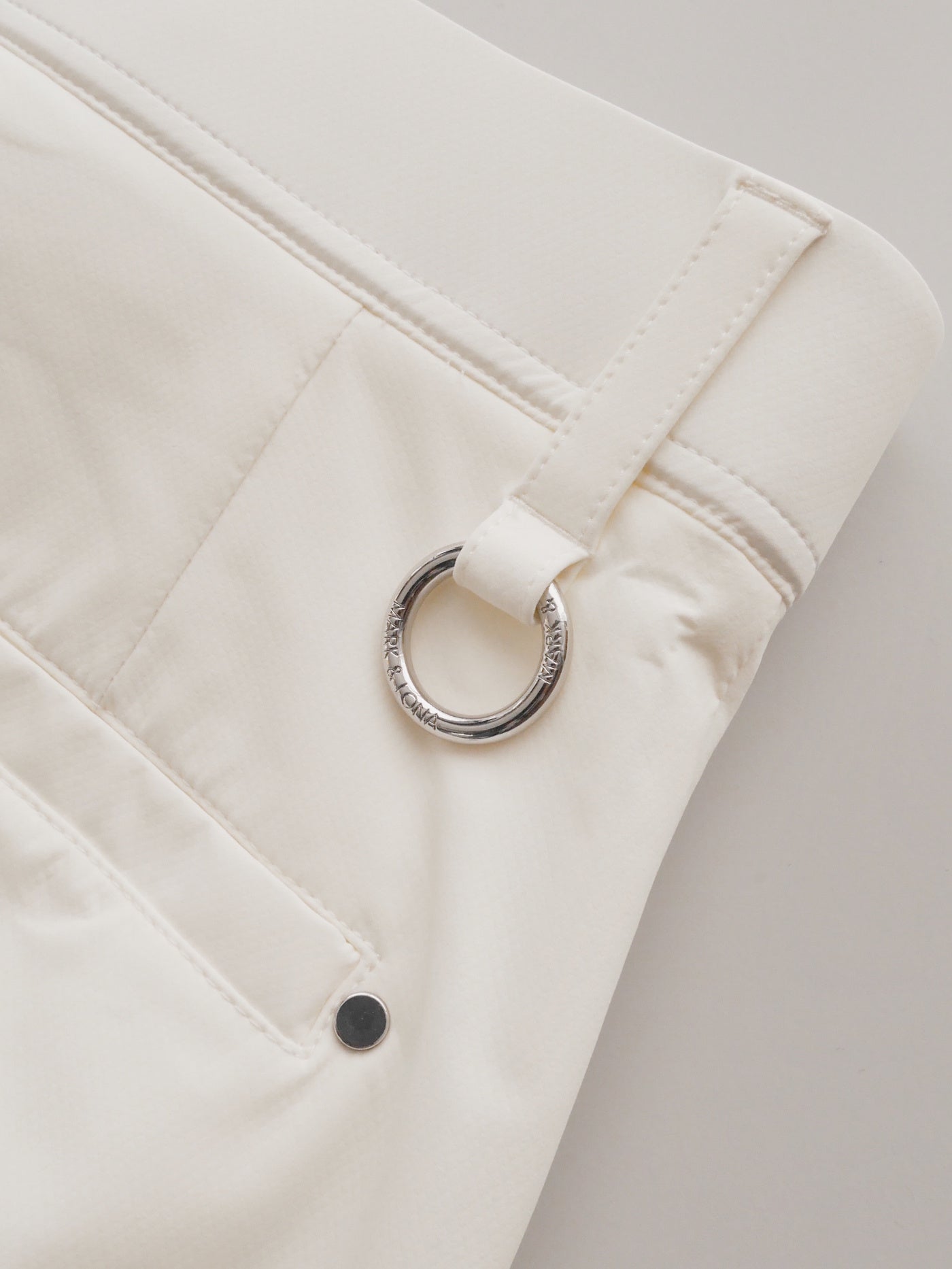 ・左前のベルトループには鍵型チャームをプラスし、さりげない個性を演出