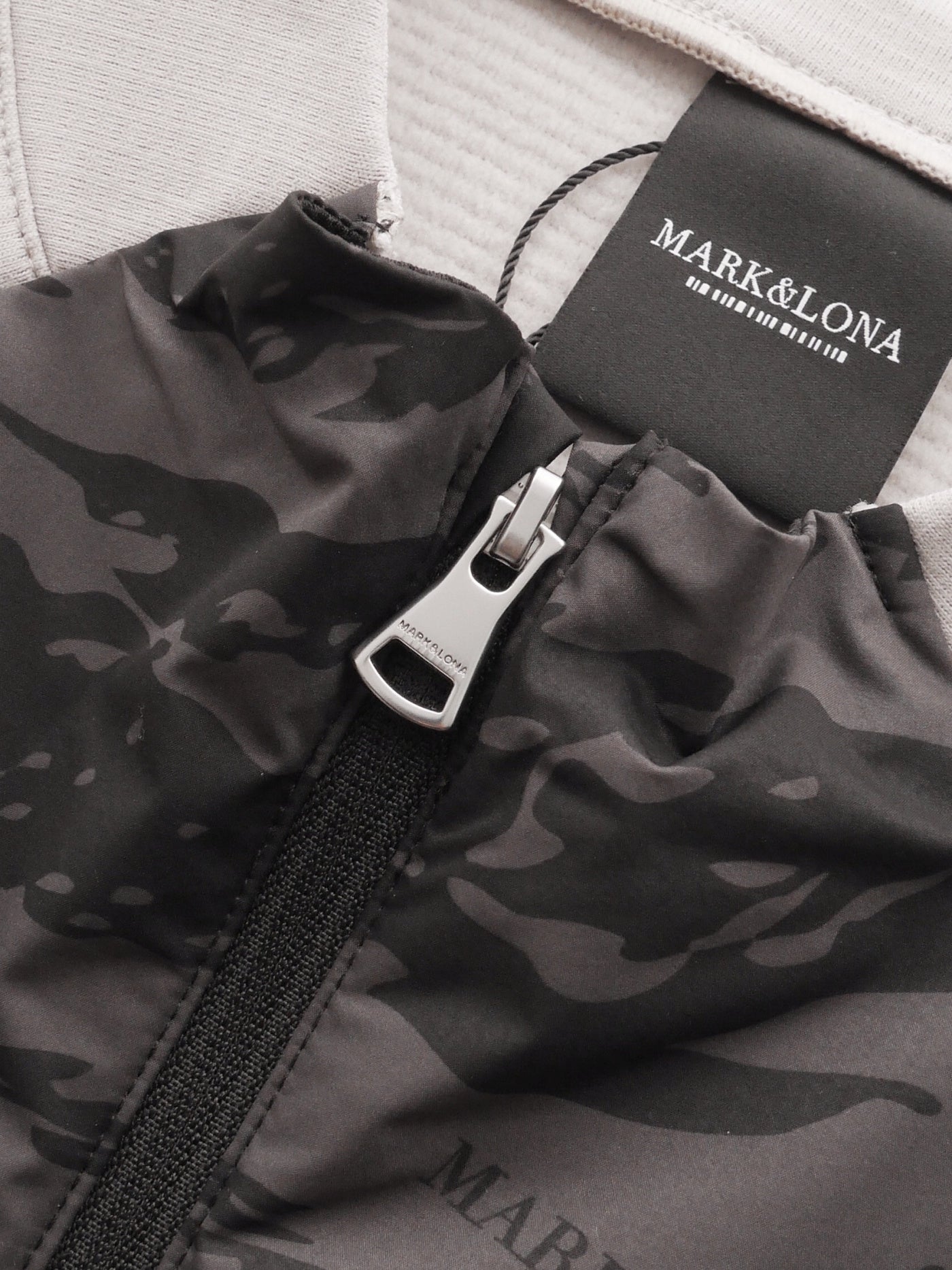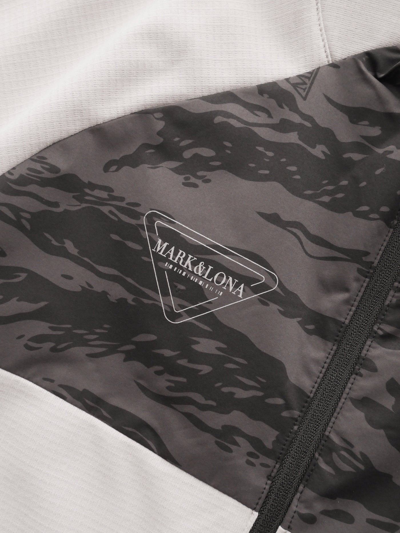 フロントのタイガーカモパターンがポイントになったフルジップモックネックシャツ。防寒性・動きやすさ・スタイル性のすべてを兼ね備えた、多機能シャツ。