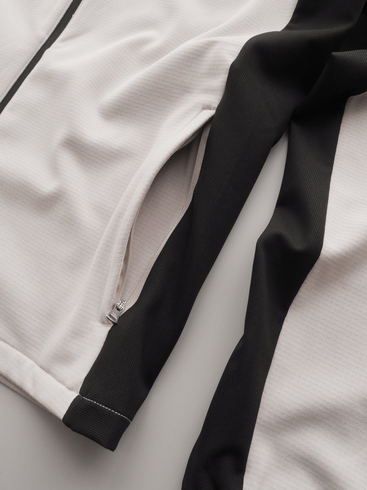 本体:ポリエステル94%,ポリウレタン6% 前身裏地:ナイロン74%,ポリウレタン26% 別布/前身頃:ポリエステル100% 袖:ナイロン74%,ポリウレタン26%