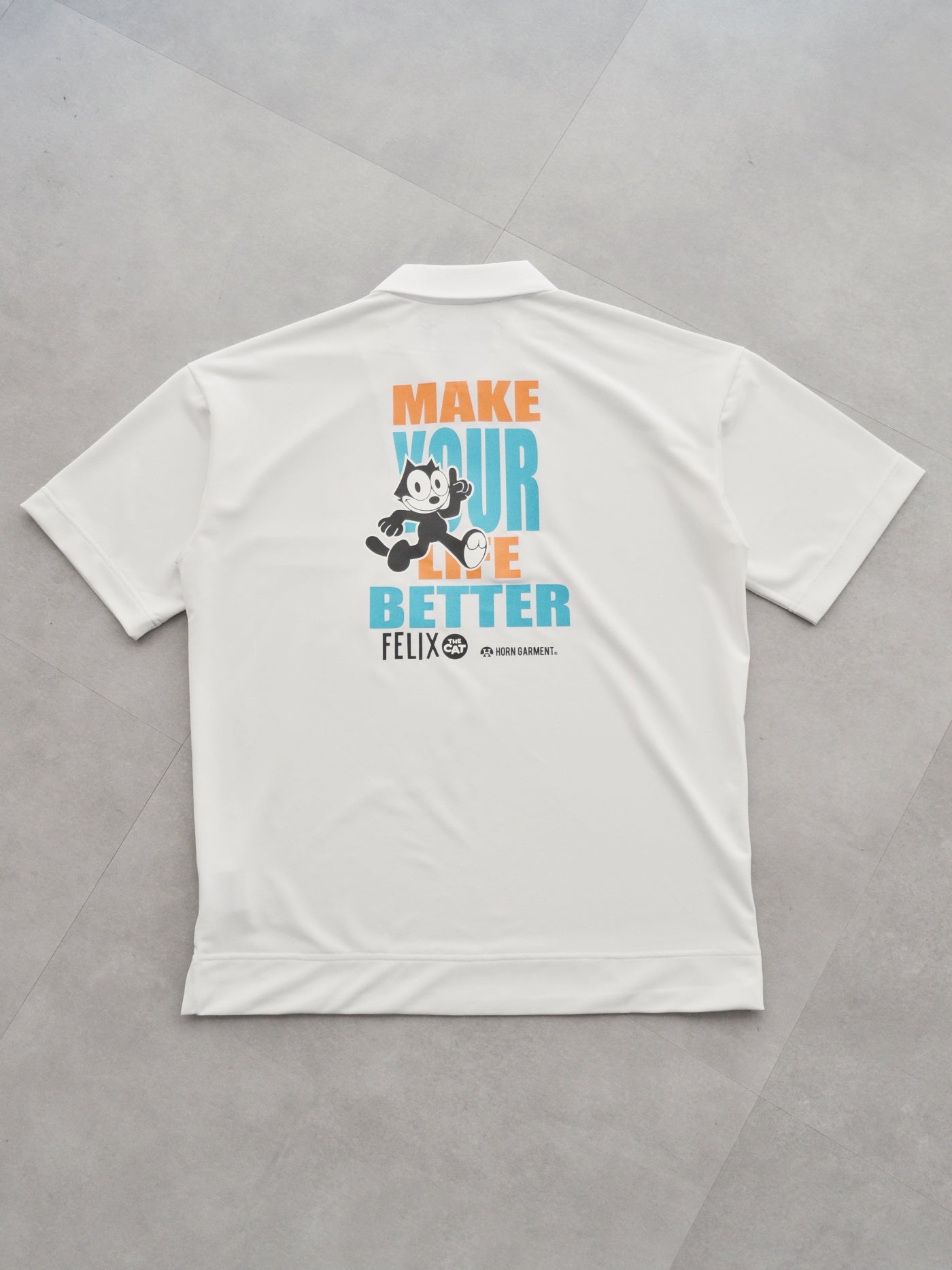 バックにはブランドのキャッチフレーズ『MAKE YOUR LIFE BETTER』とFELIXのキャラクターをラバープリント。